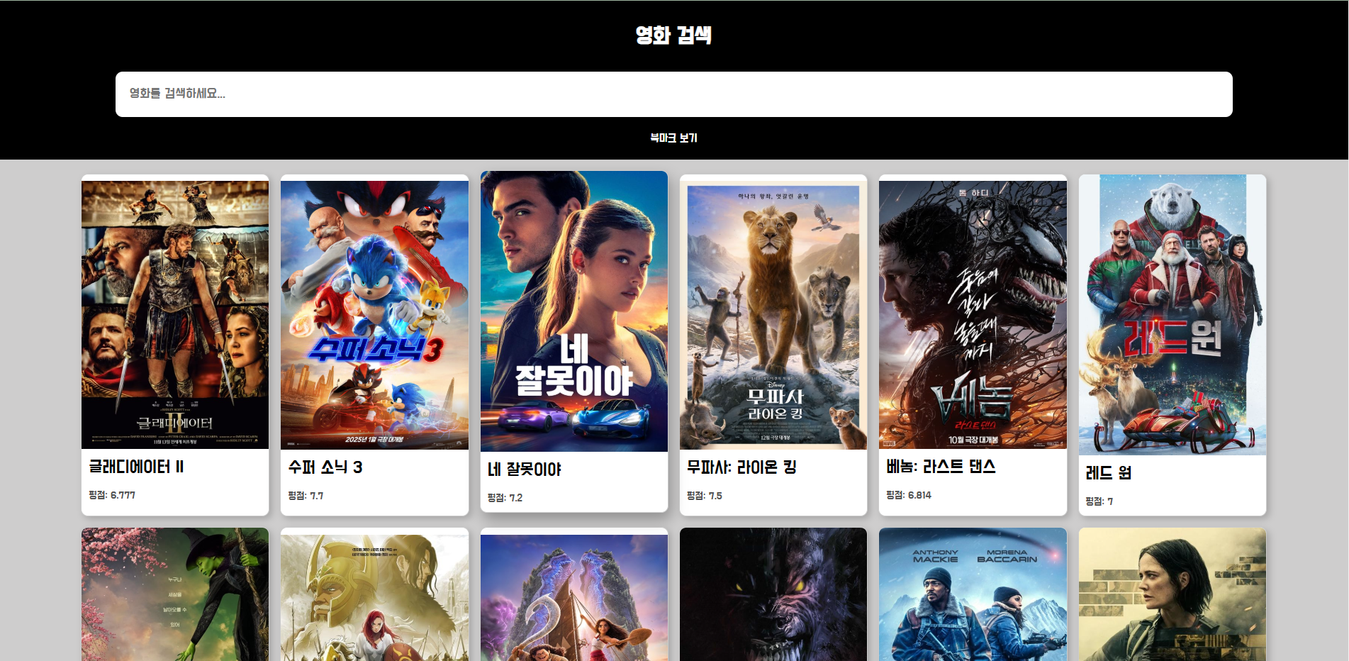 TBDM이라는 open API를 통해 영화 데이터를 불러오고 화면에 띄어주면 되는 그런 프로젝트입니다.