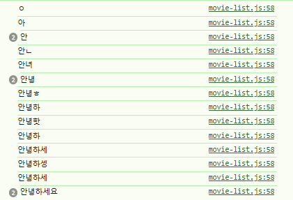입력할 때마다 console.log가 출력되는 것을 확인할 수 있습니다.