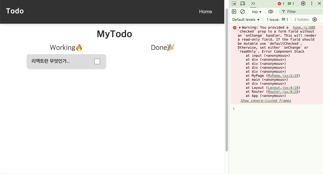 todo를 만들던 와중 또 하나의 문제가 발생했습니다.