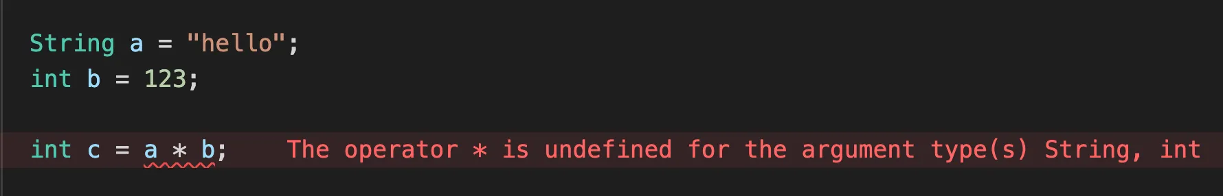 반면 ts에서는 ":number"와 같이 변수의 타입을 정의할 수 있다. 이제 앞으로 a라는 변수에는 숫자 타입의 값만 들어올 수 있다.