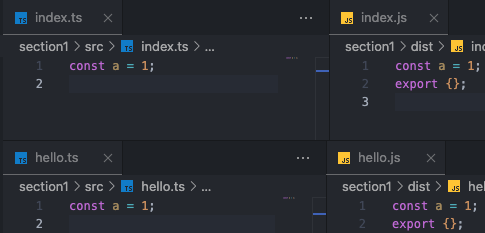 위와 같이 설정할 경우 tsc 명령어만 입력해도 src 폴더 내 모든 파일이 동시에 컴파일되어 JavaScript 파일로 변환된다.