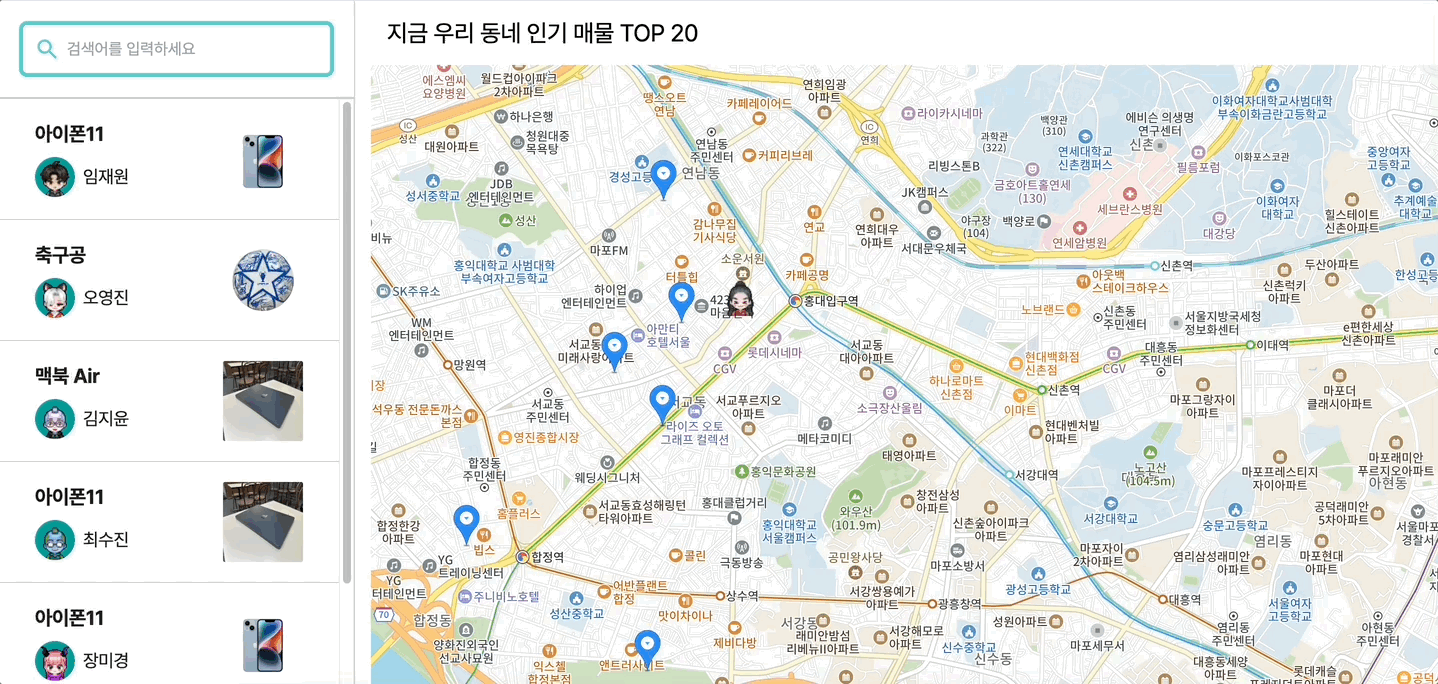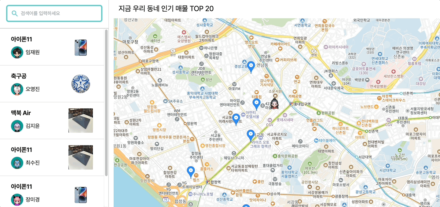 일반적으로 지도에서 여러 개의 마커를 표시하면 사용자가 특정 상품을 클릭해도 지도 위치는 변하지 않으며, 사용자가 해당 상품의 위치를 명확하게 인지하기 어렵다고 생각되었습니다.