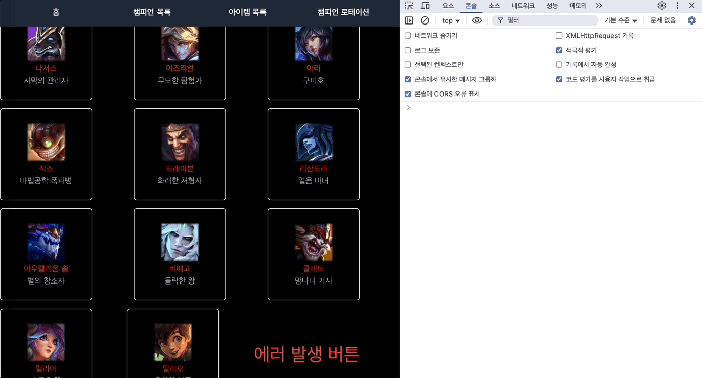이렇게 에러를 던져주는 코드를 작성한 후 브라우저에서 시도해봤습니다.