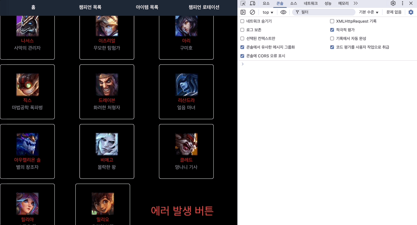 클릭 이벤트를 통해 발생한 에러는 에러 바운더리가 감지하지 않는다는 사실을 알 수 있습니다.